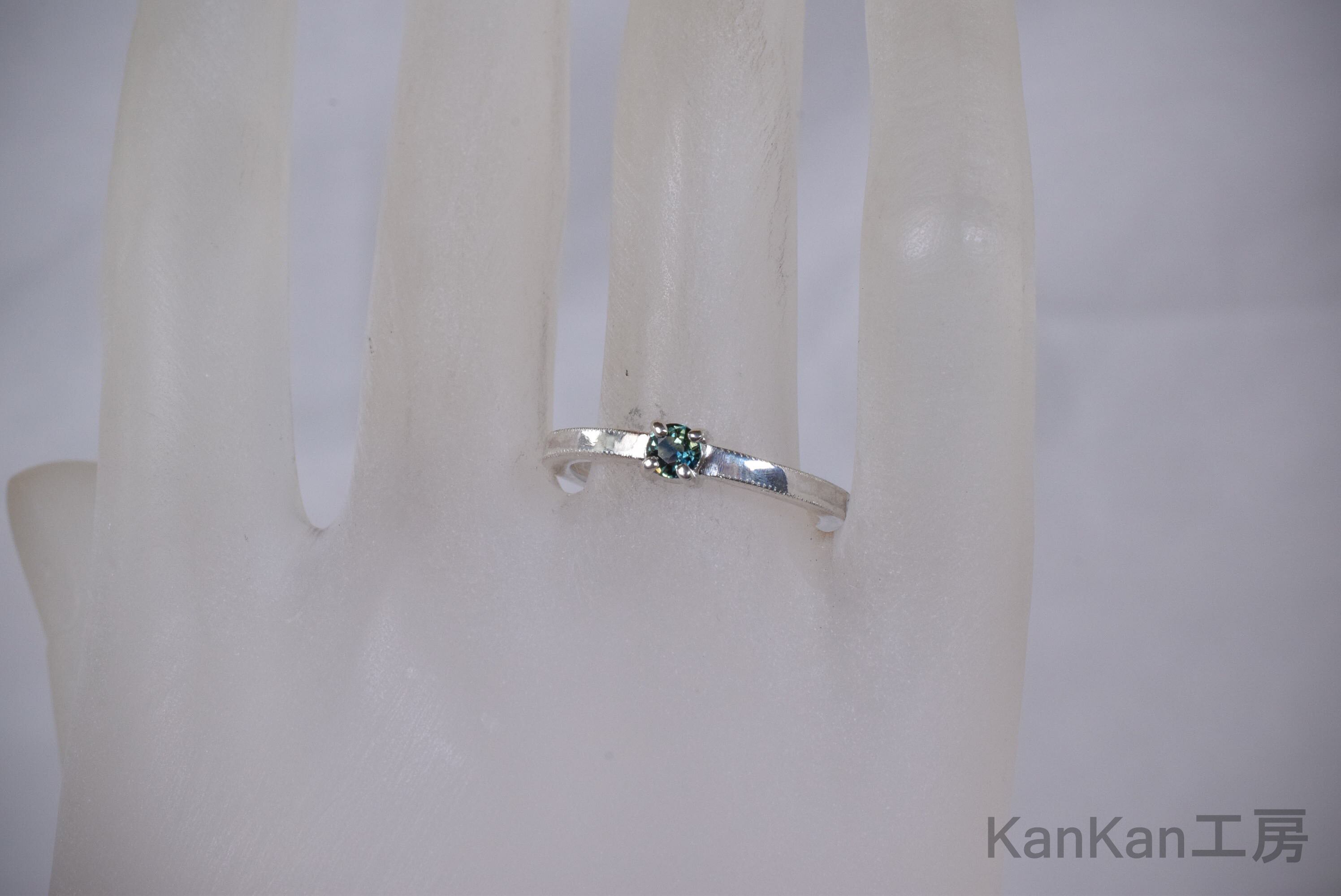 リングサイズを指定していただいてから、宝石を外して製作します。製作期間を1~4週間程度いただきます。仕事の混み具合によっては長くなる場合が有ります。