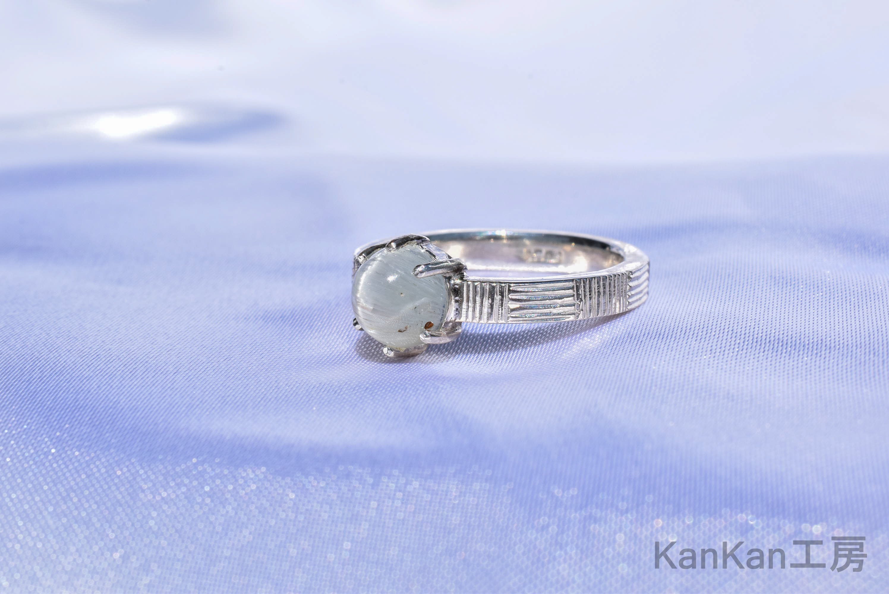 トパーズ全体に入る管状内包物に交差する形でシャトーリャンシー効果が見られるトパーズキャッツアイです。高さがあるピースですので、ぶっつけ事故注意。また原石由来と思われるへこみや母岩の一部などが見られます。この2点はご注意ください。カラーレスのトパーズにある内包物とキャッアイ効果が見られる様は繭玉の羽化のようです。