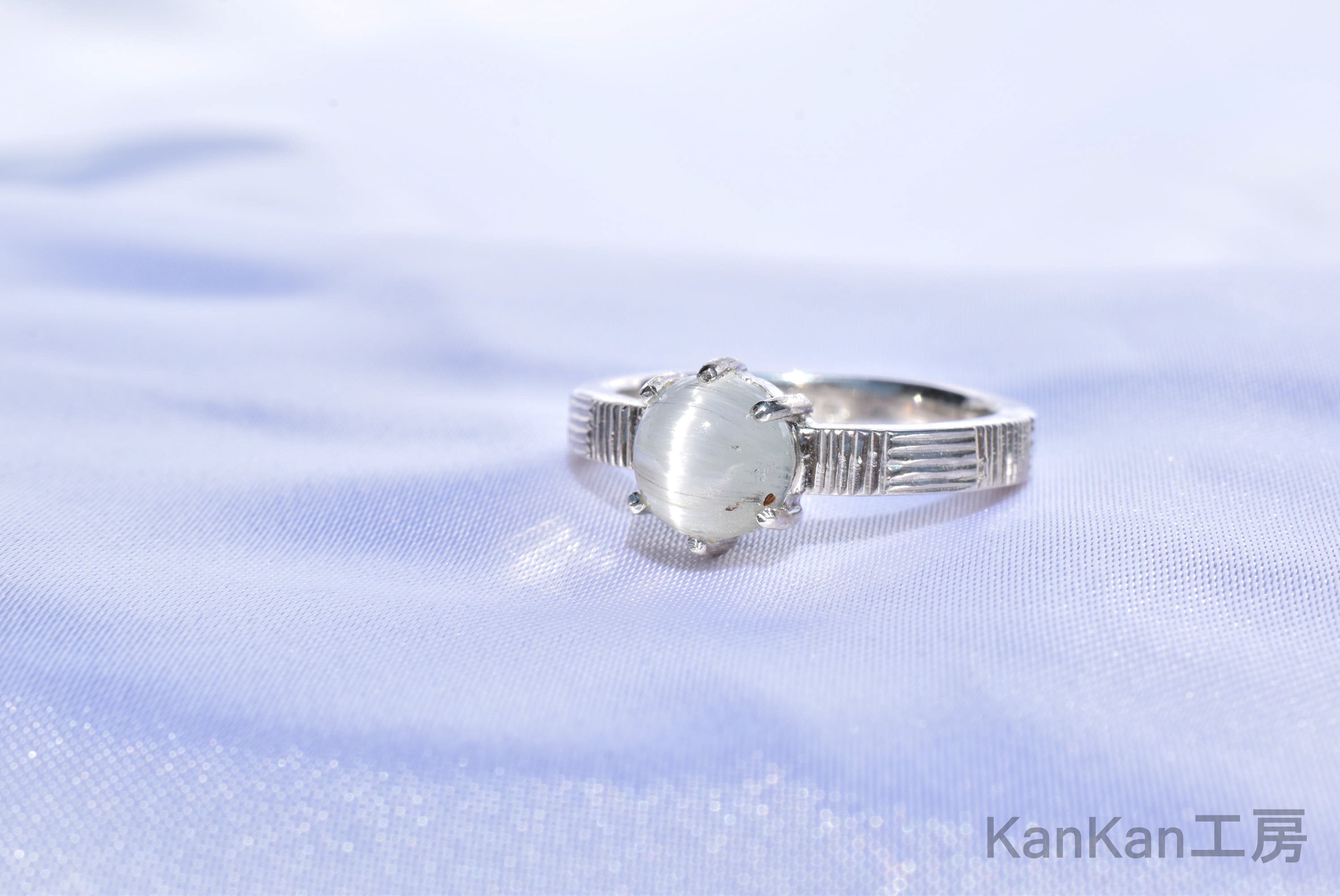 リングの腕全周に布目をイメージした彫り模様を施しました。