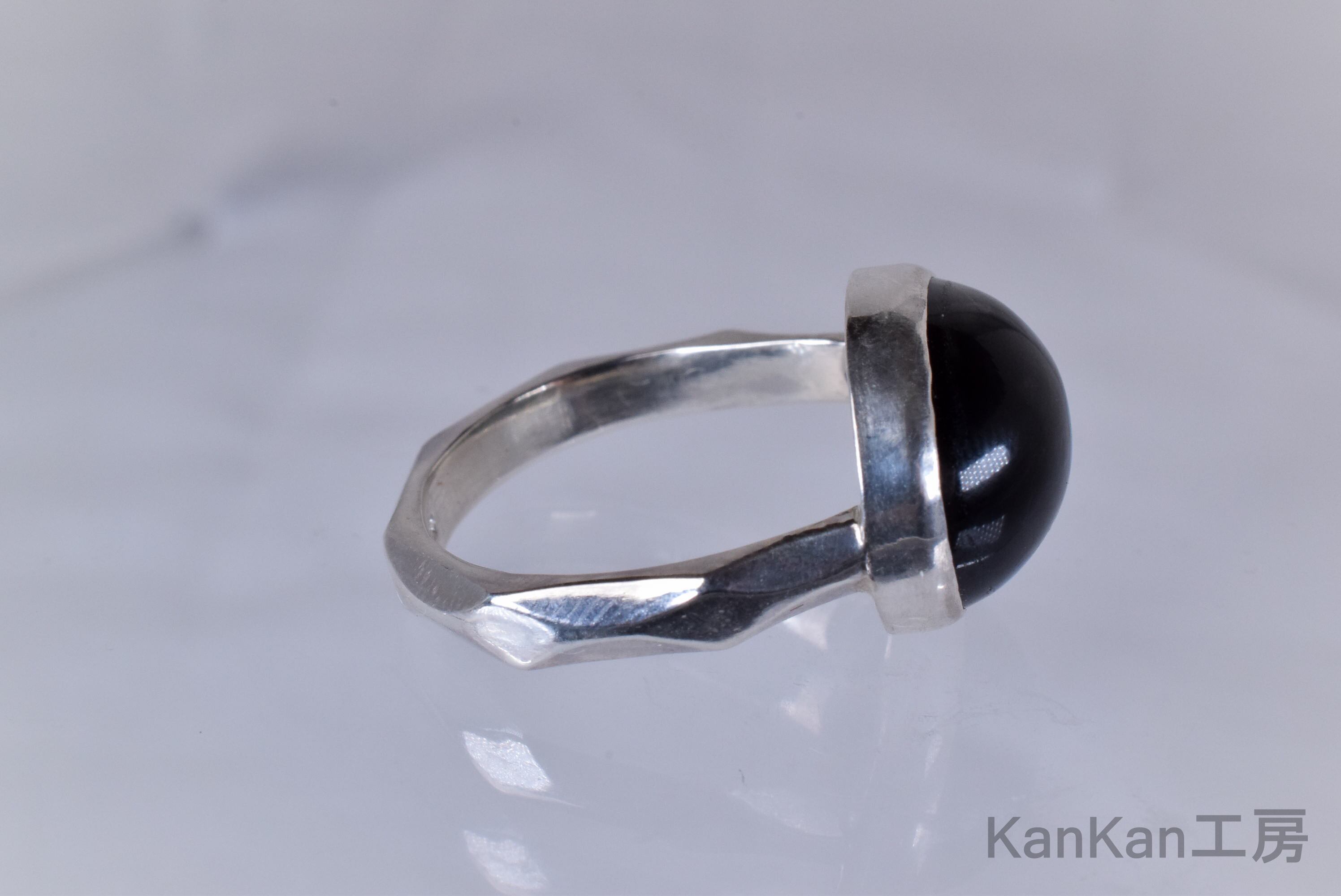 ビクトリアストーンは故・飯盛里安氏が製造した人造宝石です。現在は製造が途絶えてしまっており市場に流通するのはデットストックのみとなっている珍品です。ビクトリアストーンには様々なカラーバリエーションがあります。こちらは特に珍しい色といわれている黒色(IL-アメシスト:青紫色)と呼ばれるタイプのモノになります。