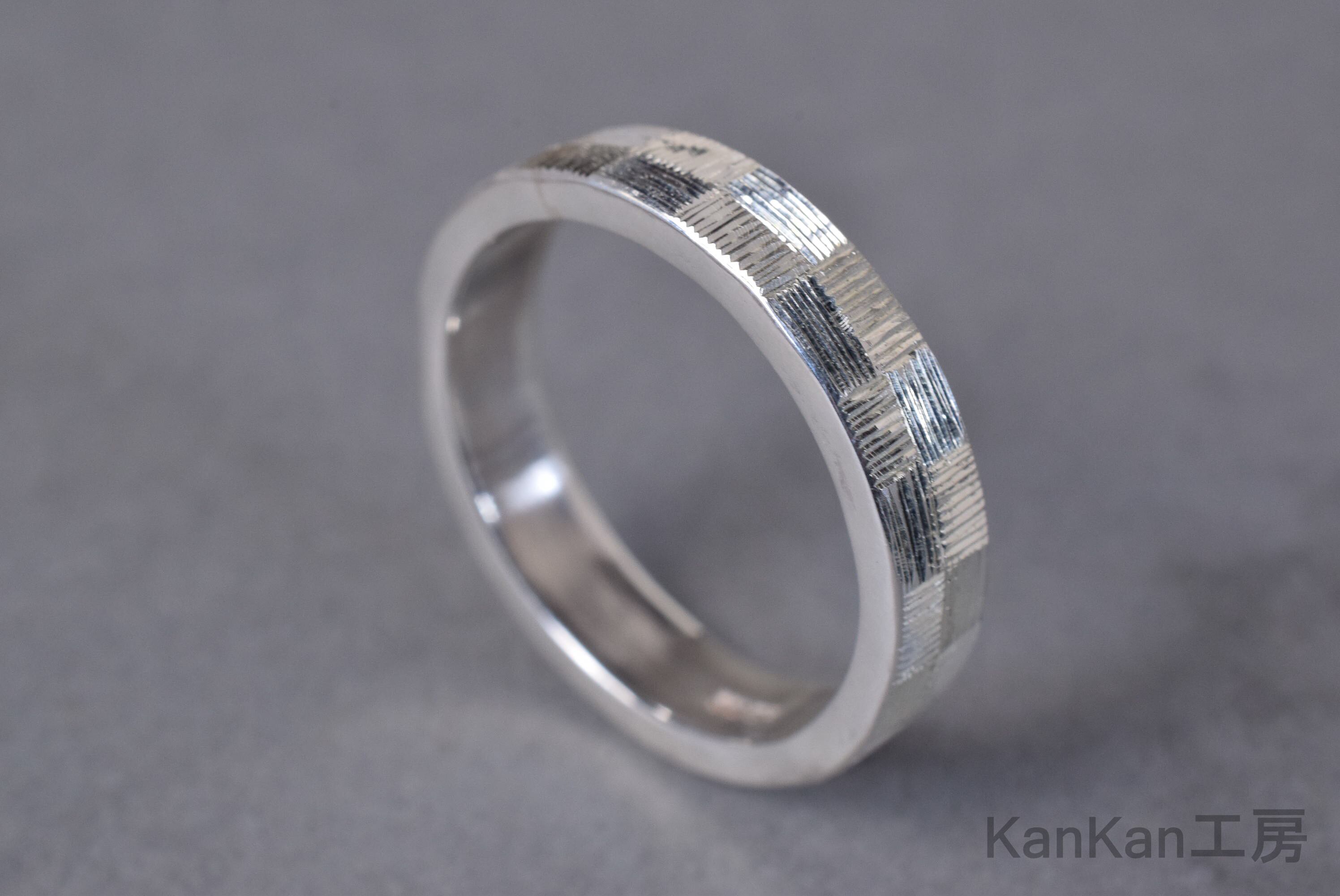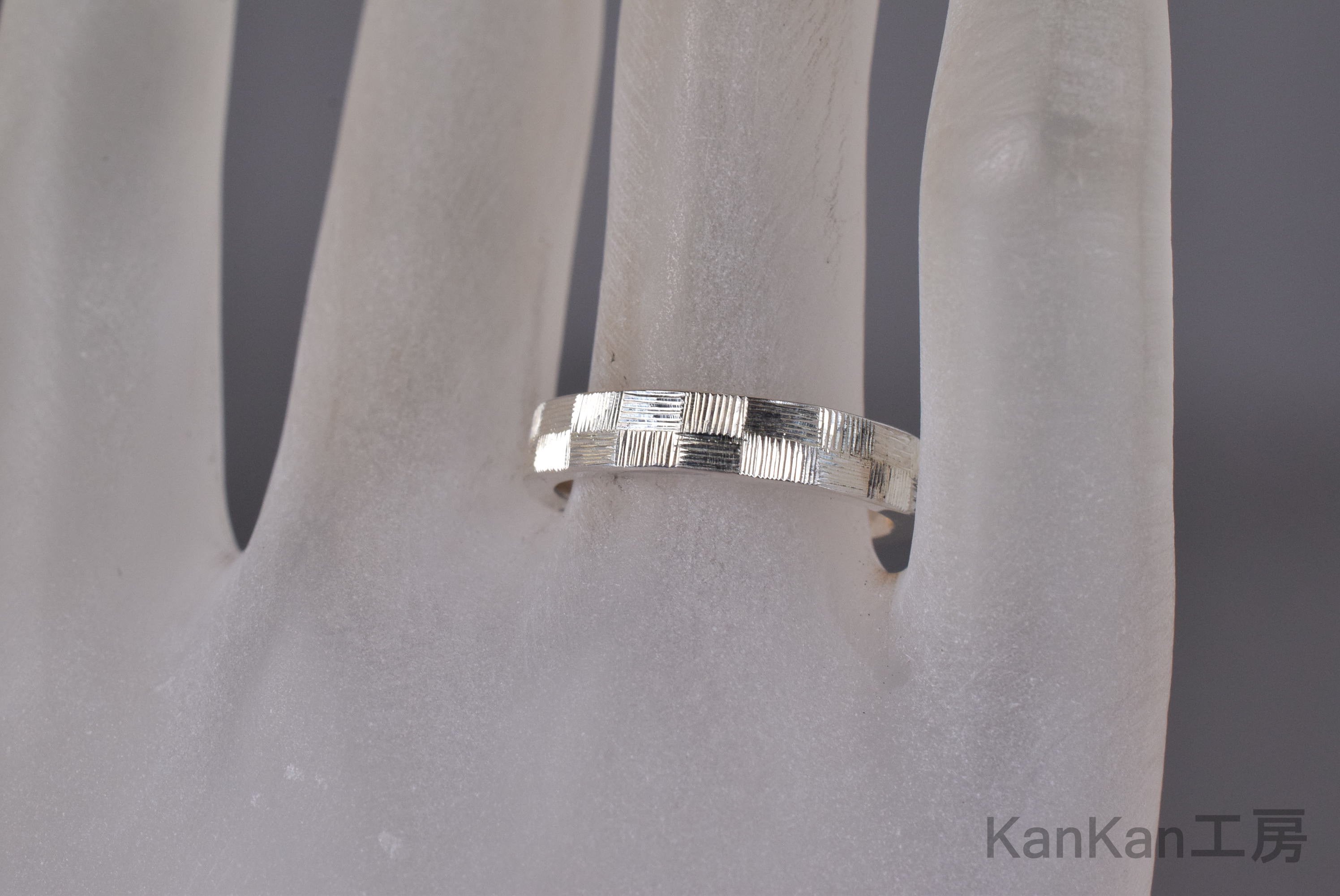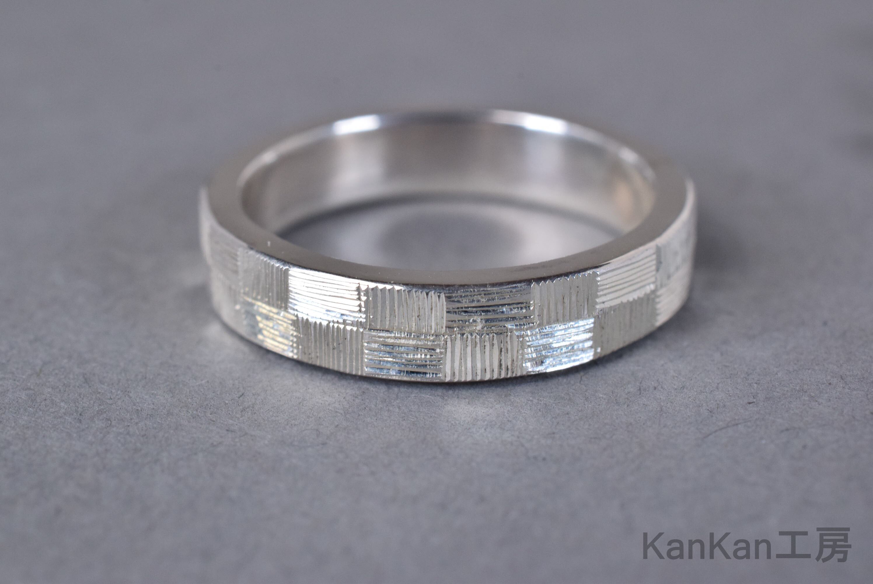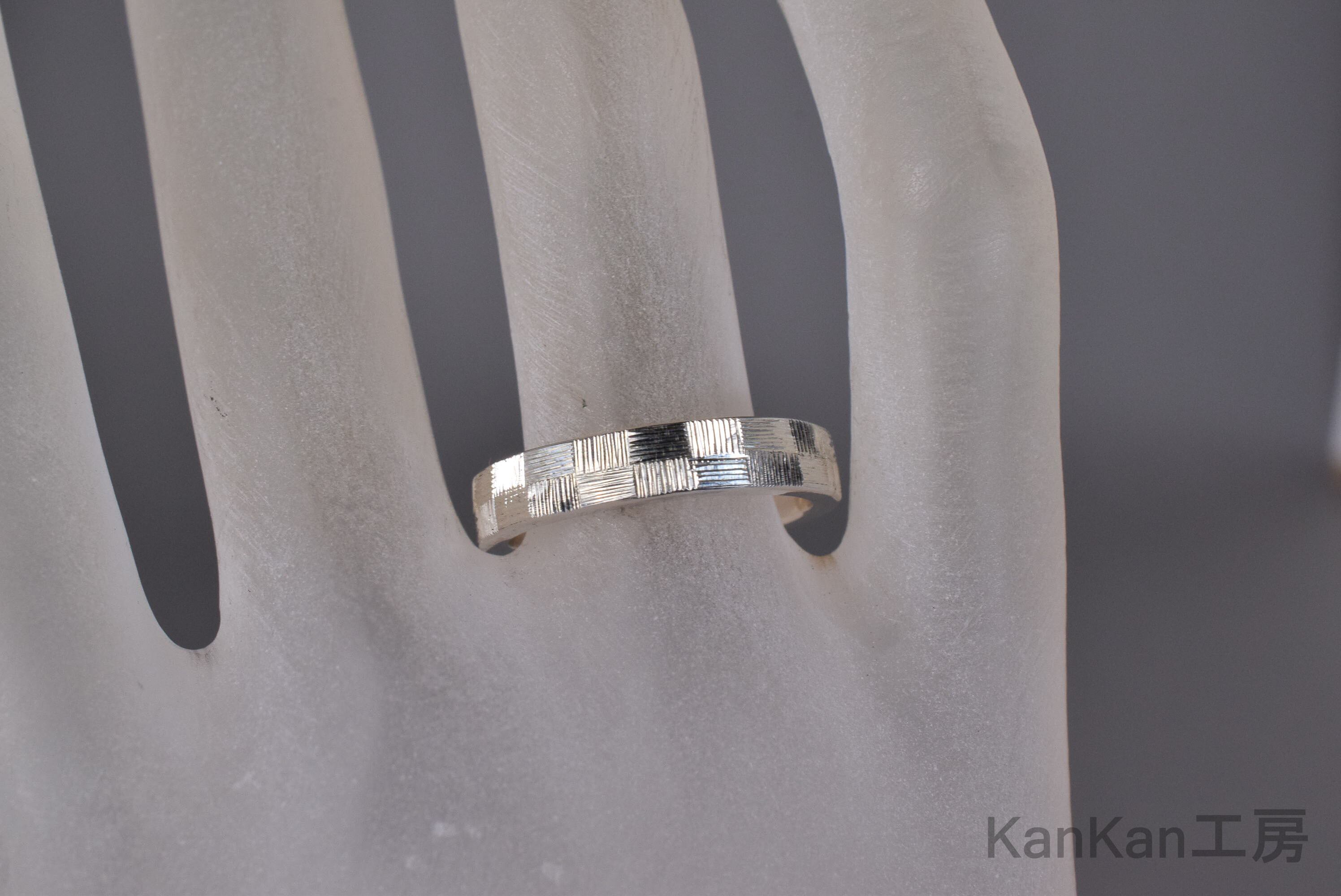 和柄の市松模様を、2列で全周に彫り込んだシルバーリングです。