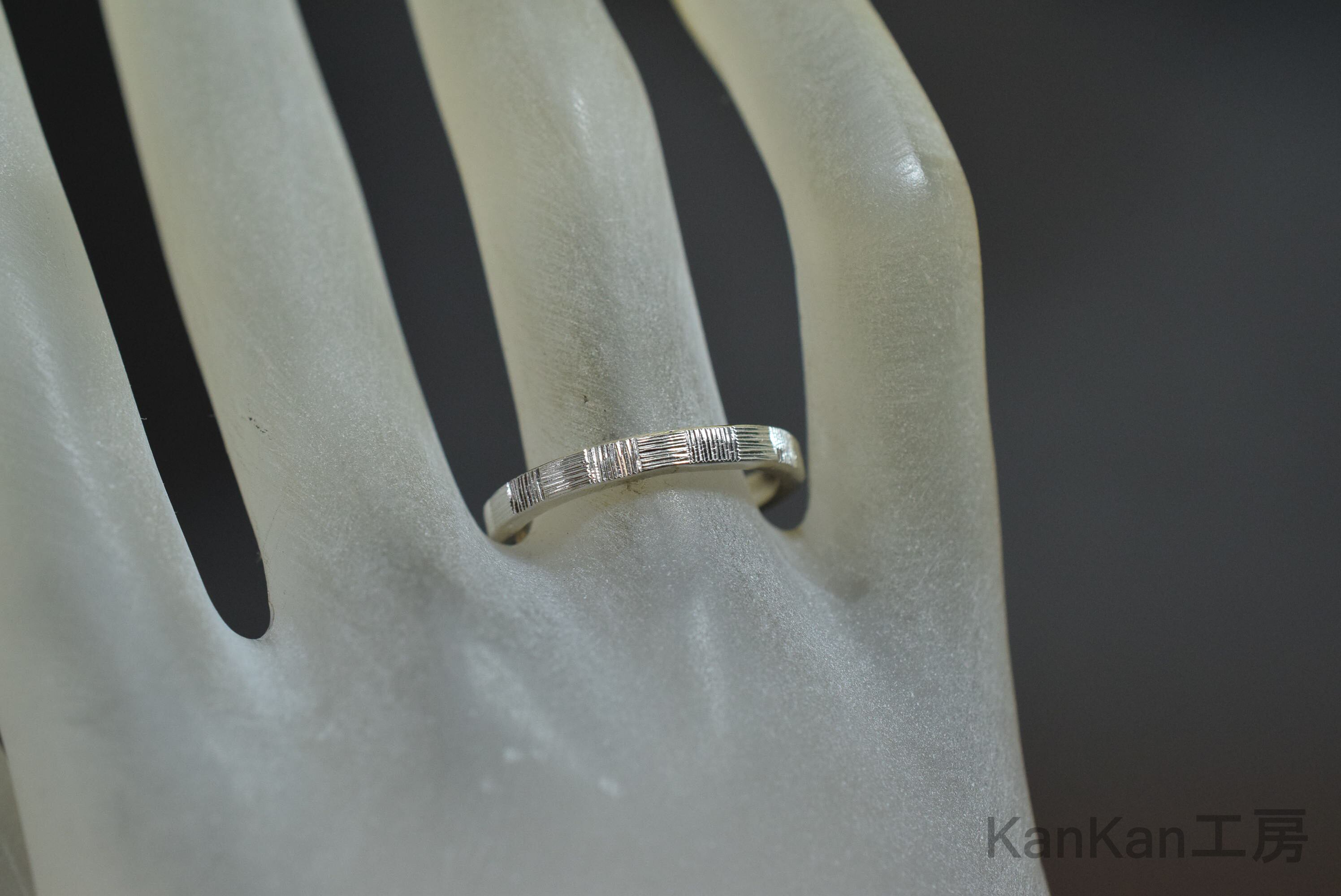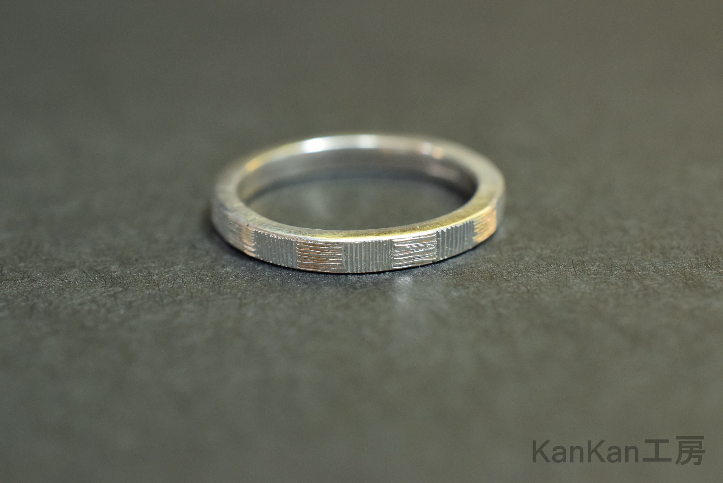 全周に市松模様を施したシルバーリングです。