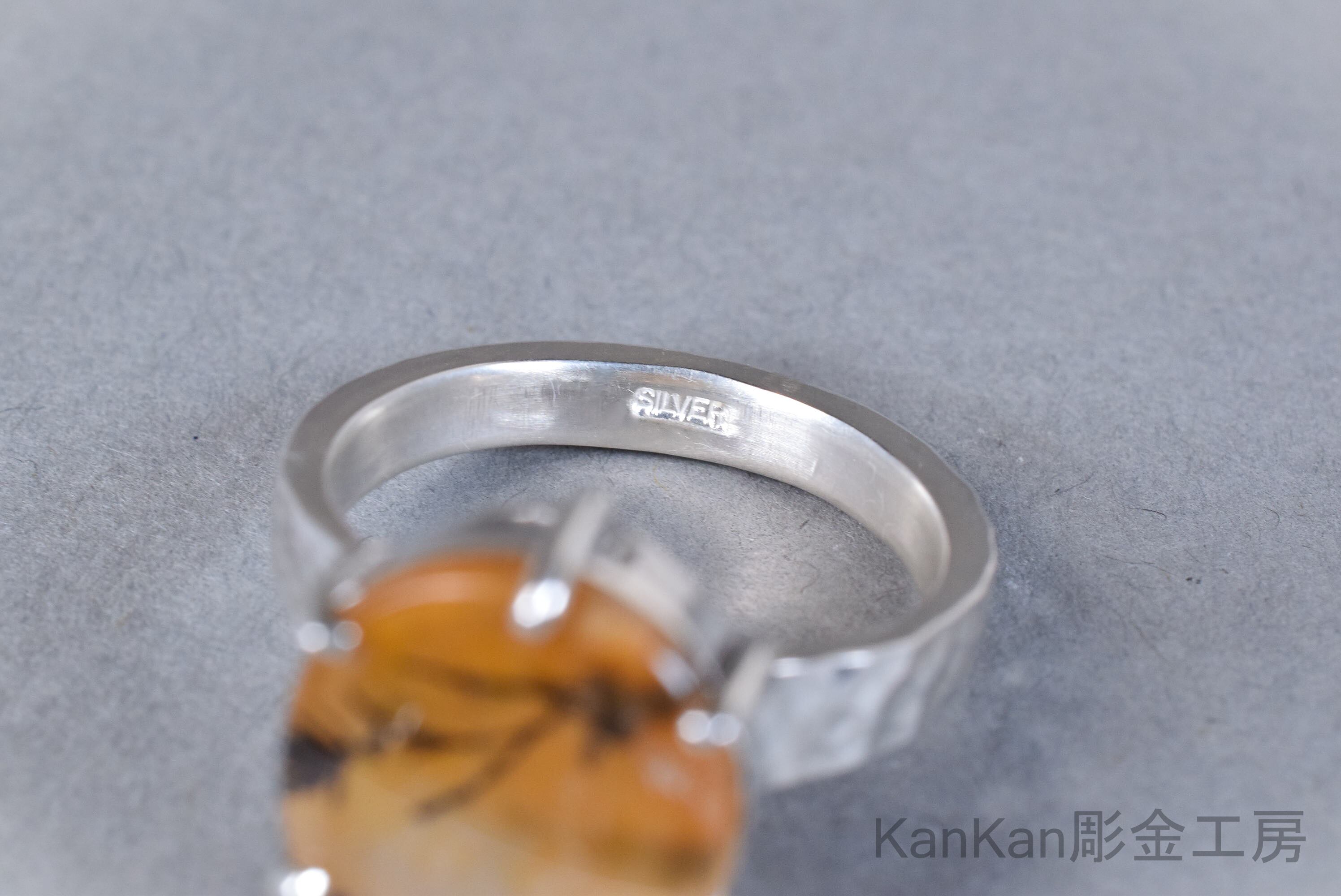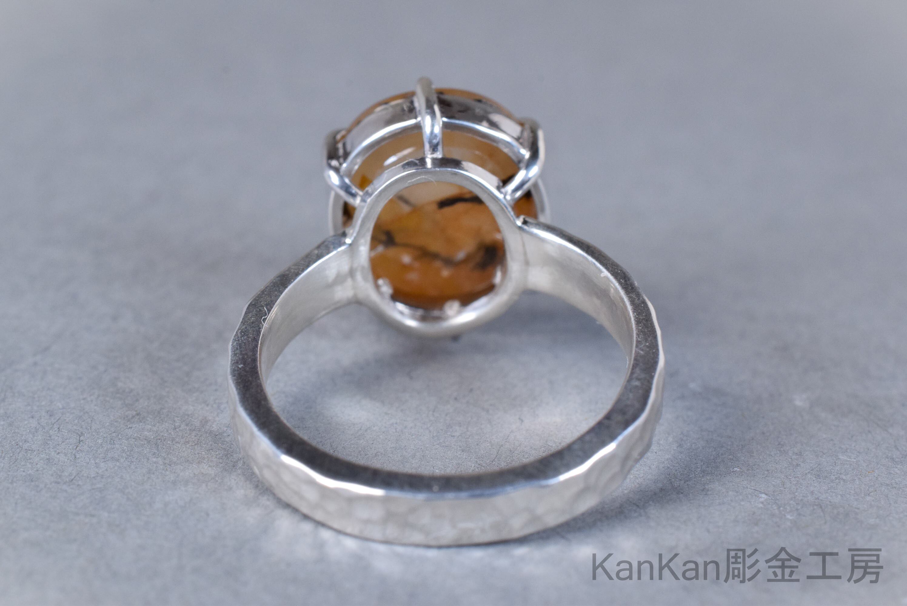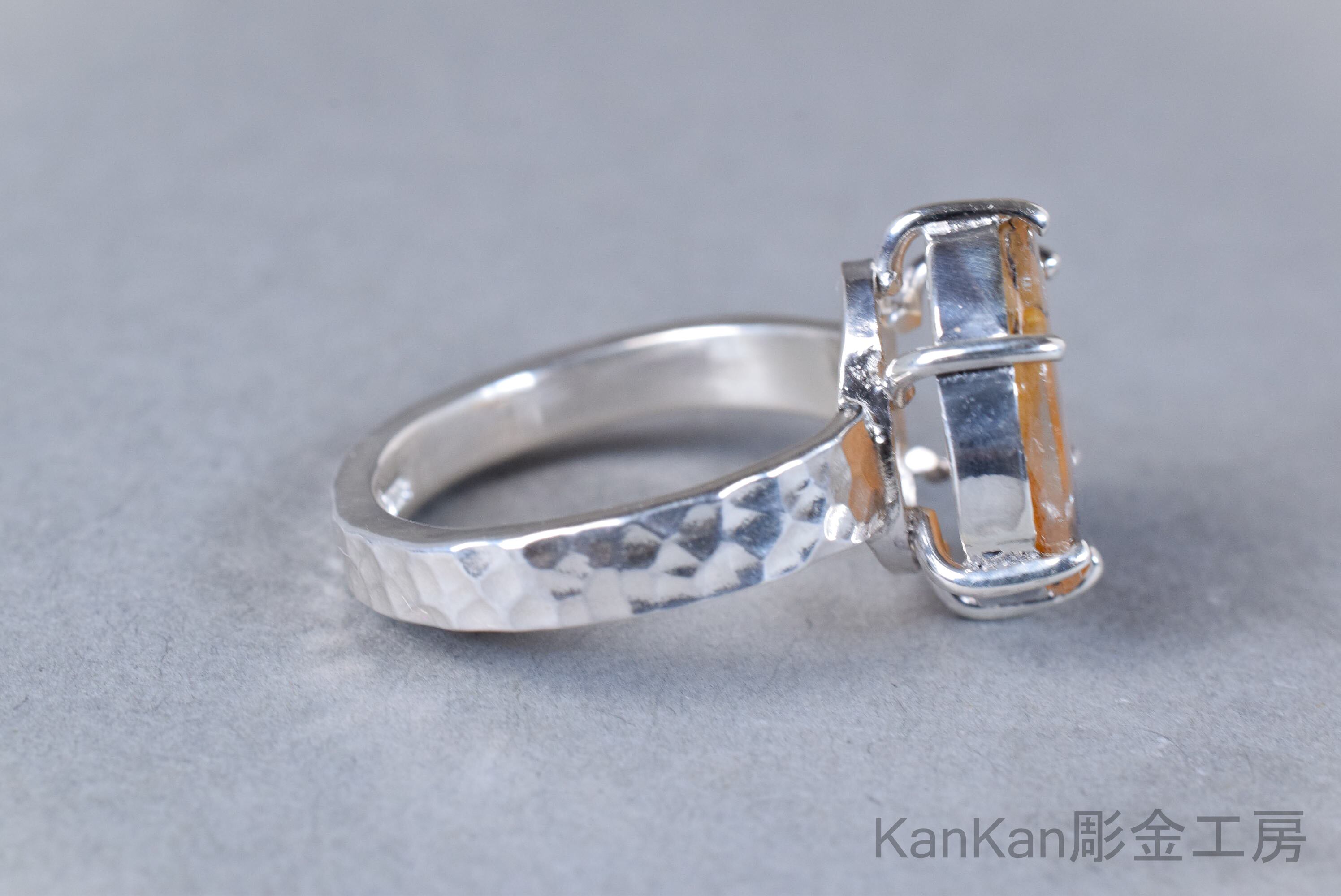 リング腕には全周に槌目を施し、金属の表情に揺らぎを与えました。