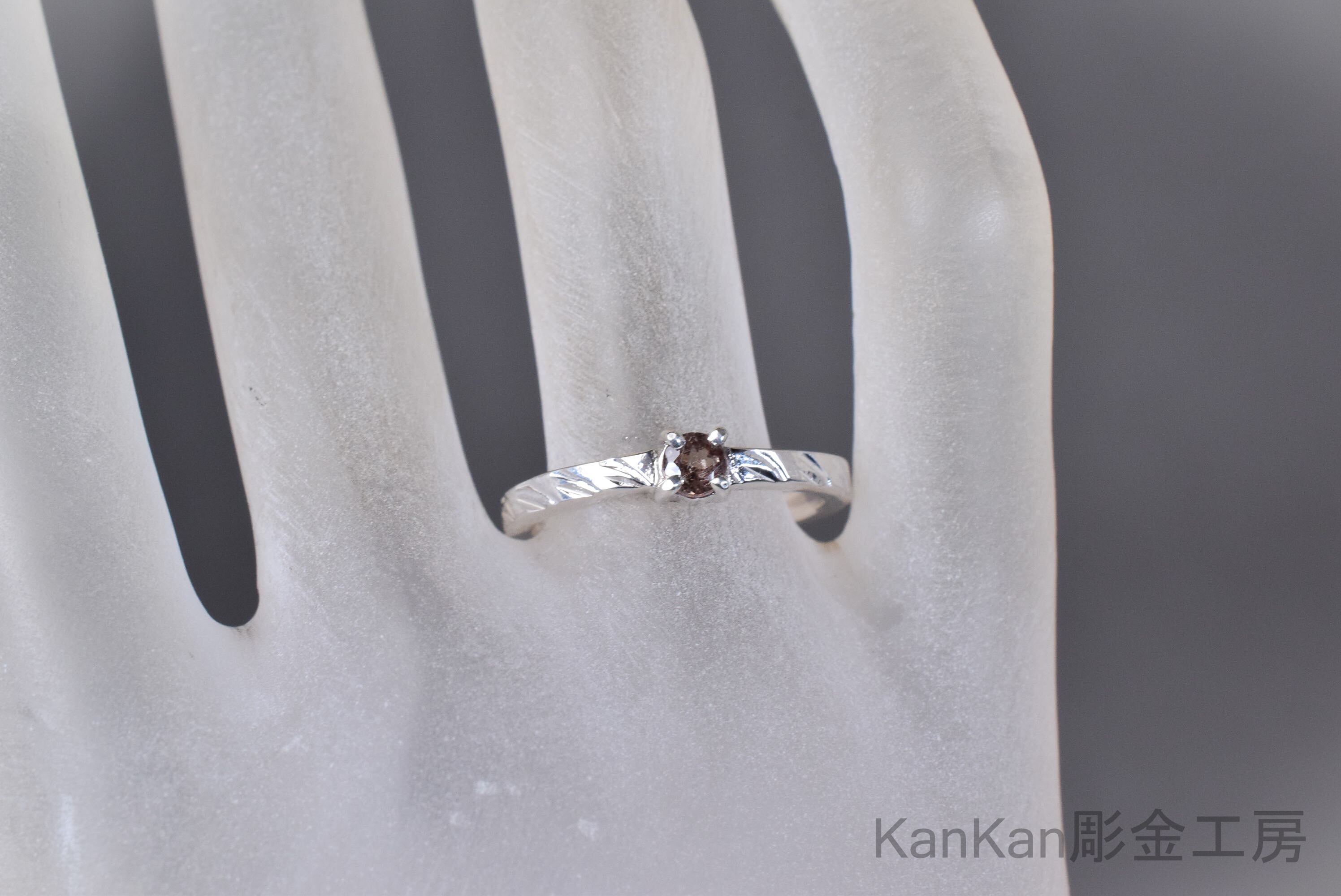 荒らした下地をベースに、植物を思わせる彫り模様をリング全周に施しました。