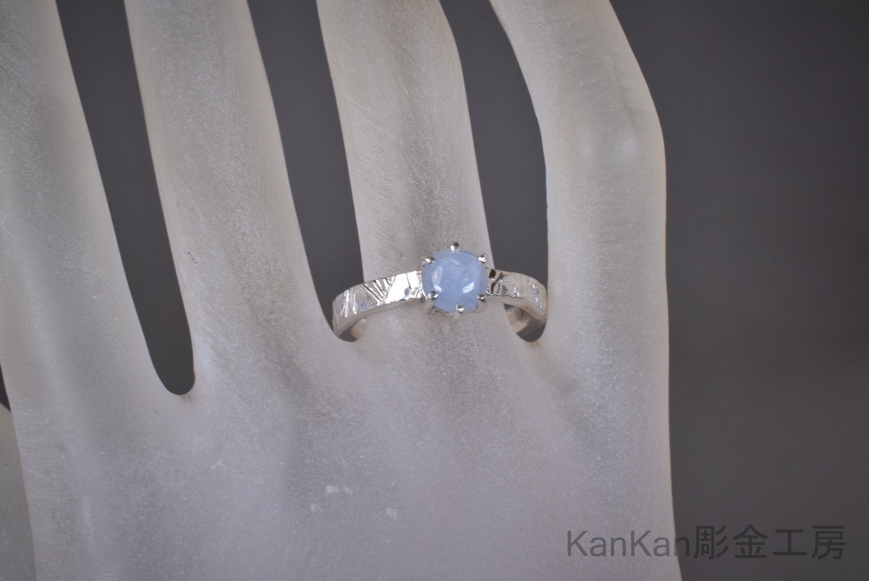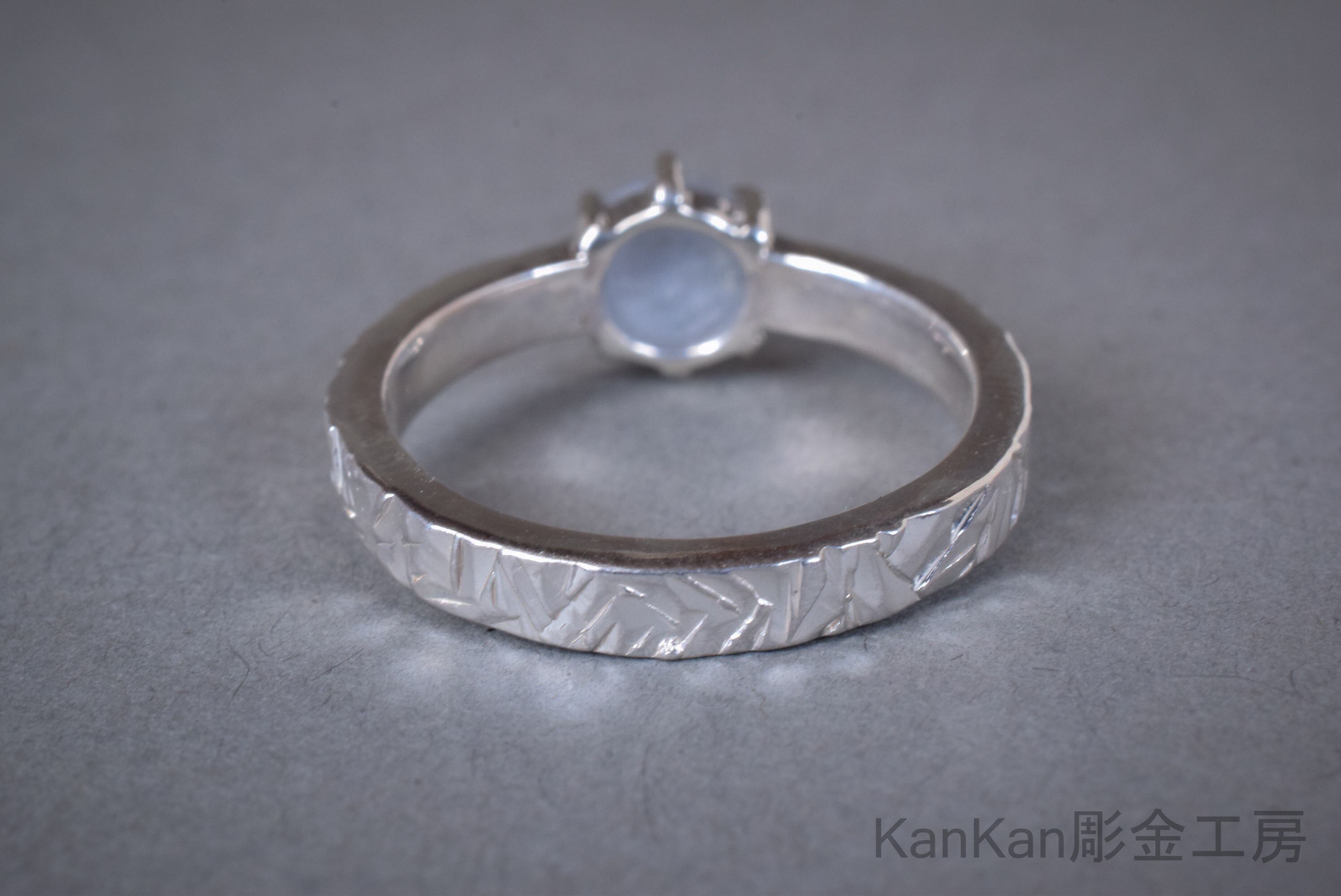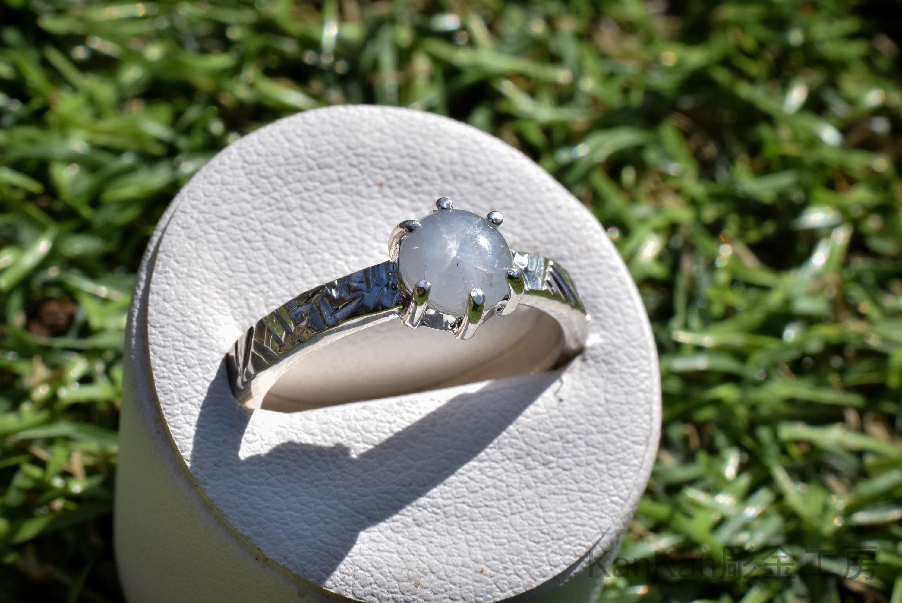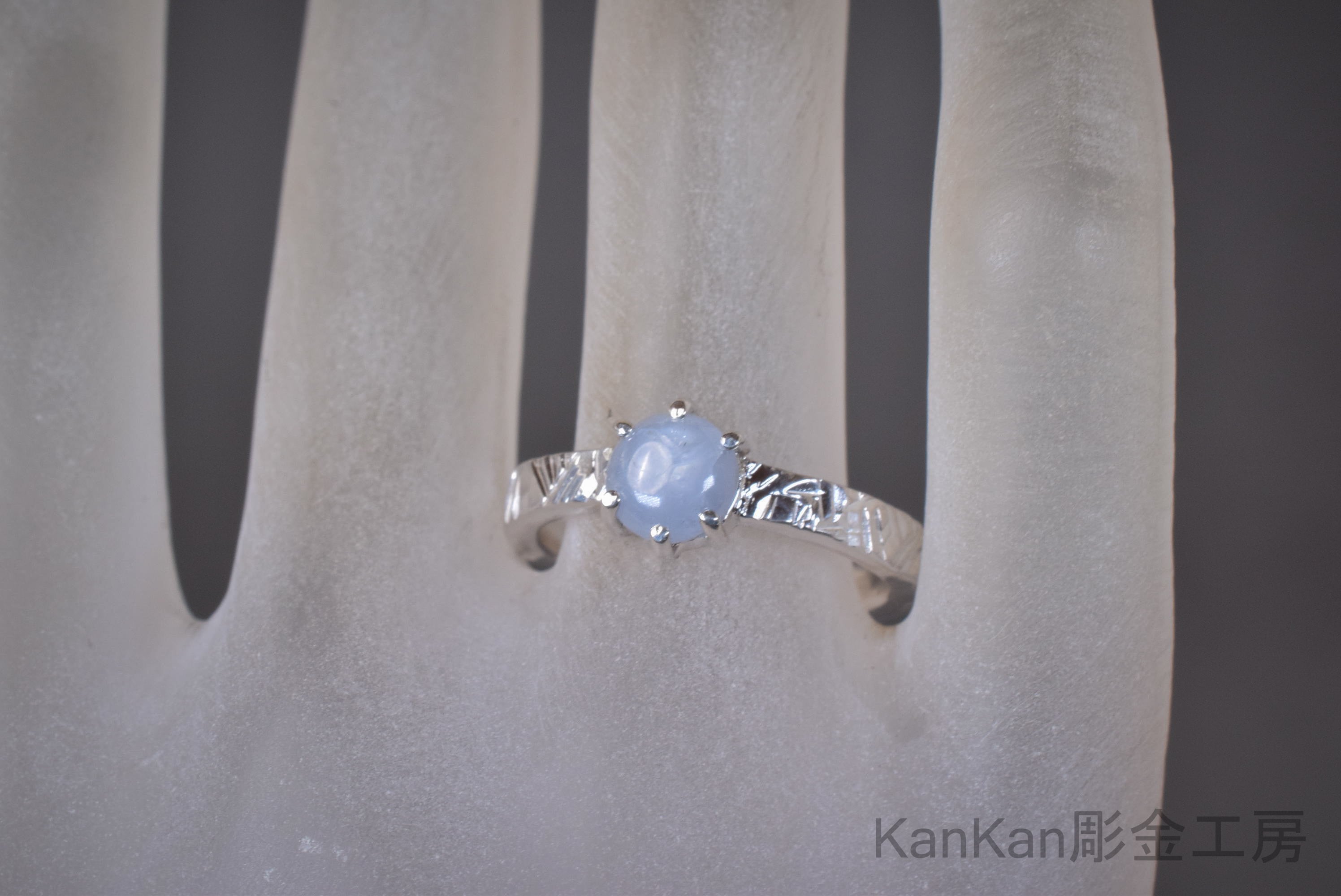 グレー寄りの青いスターサファイアを用いたリングです。
