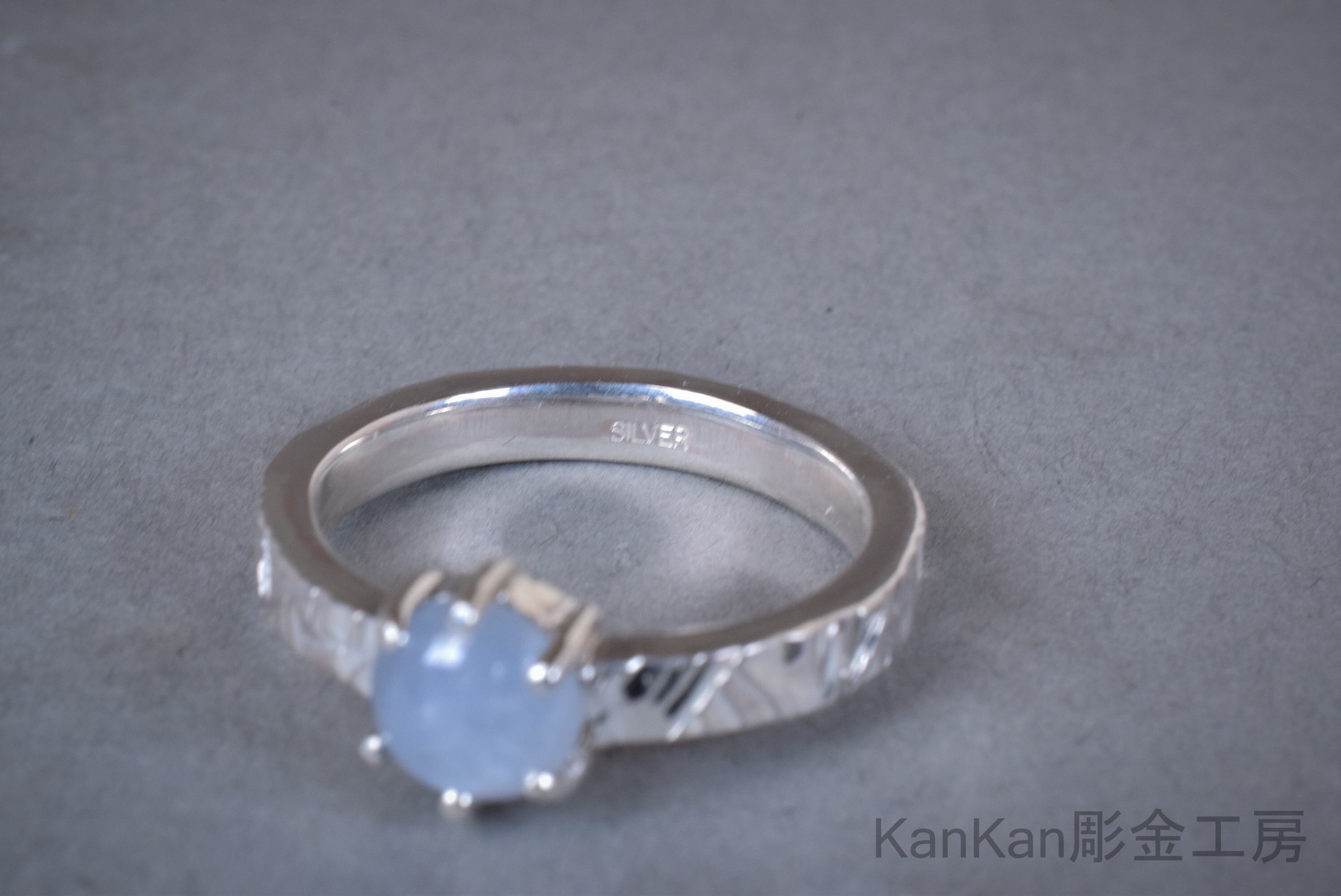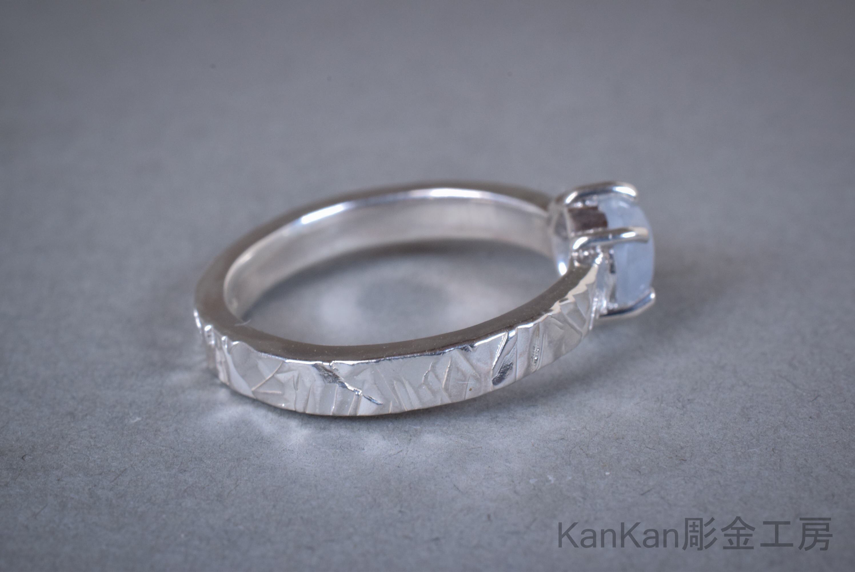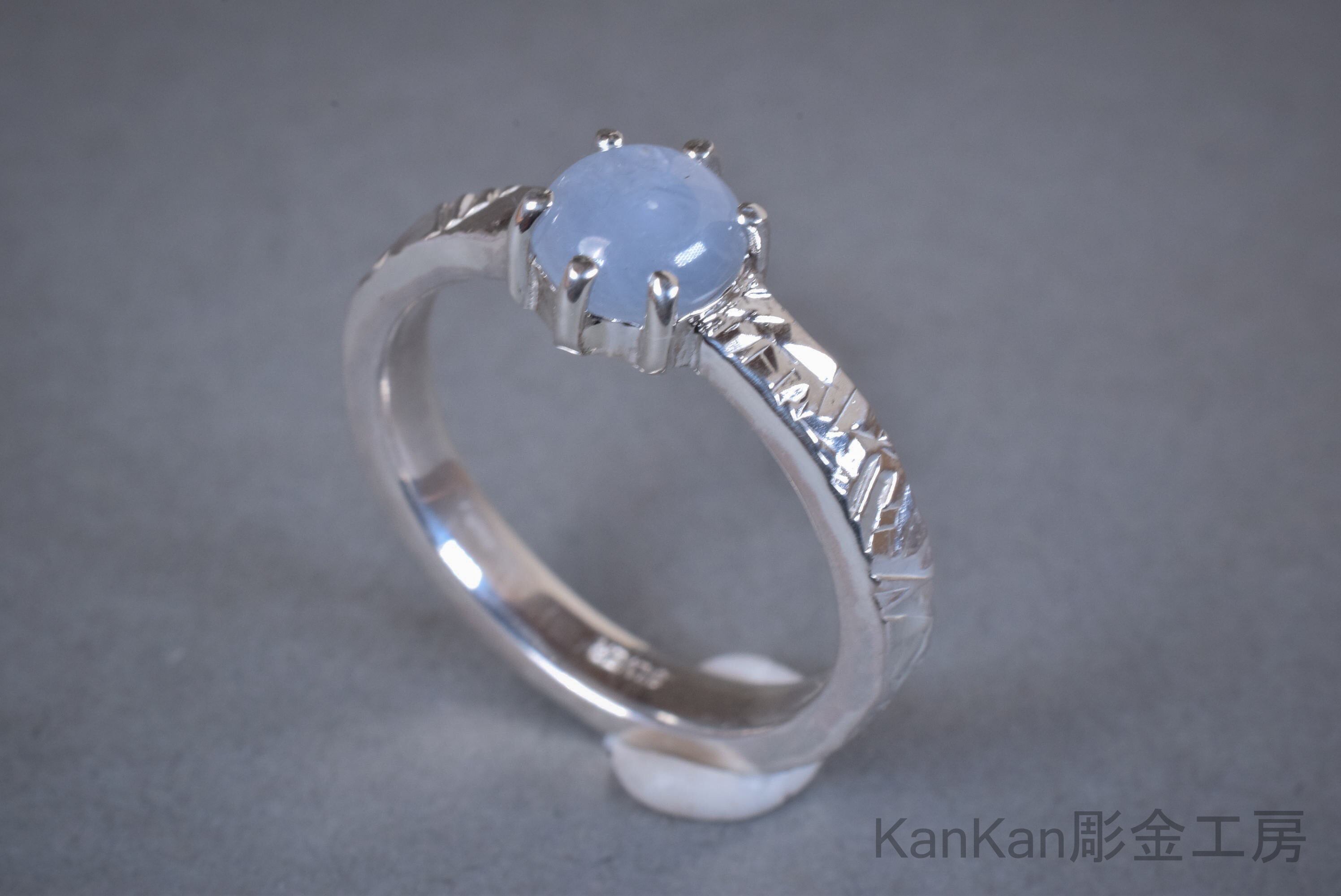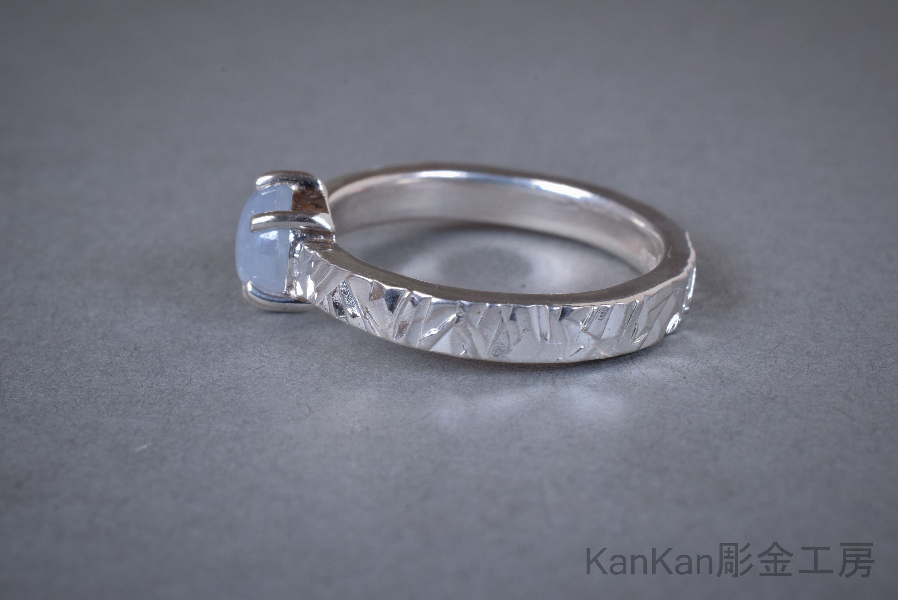 グレー寄りの青いスターサファイアを用いたリングです。