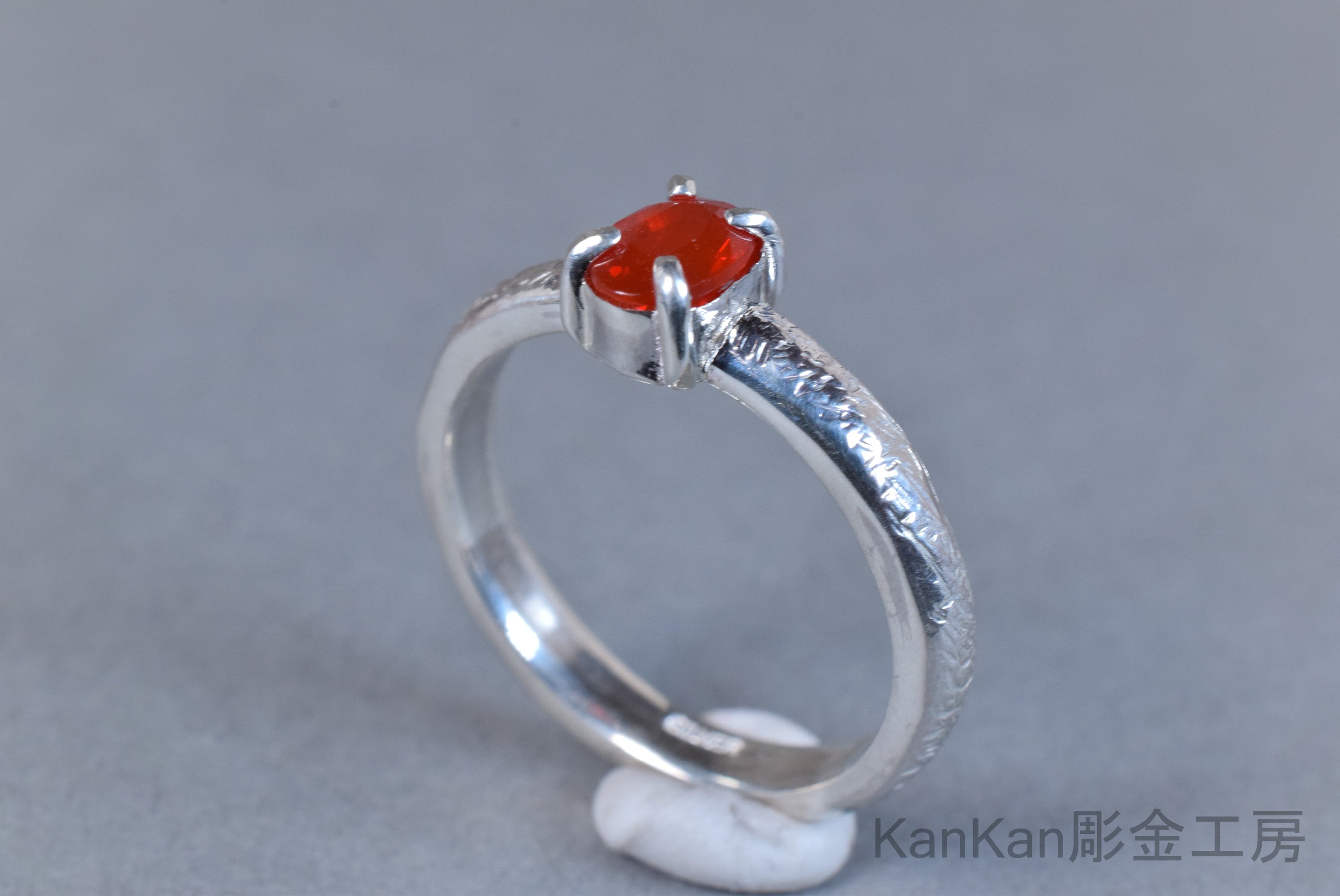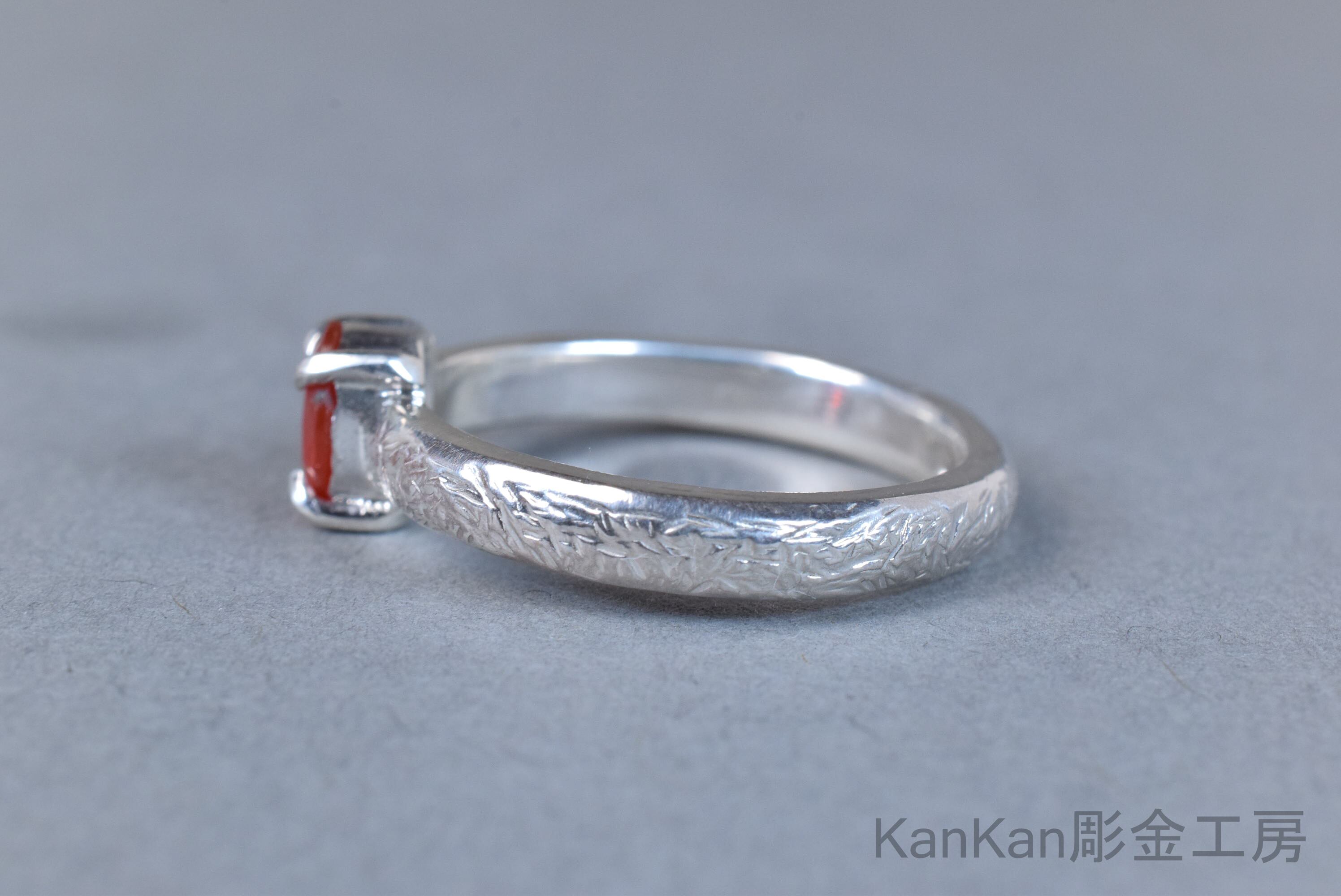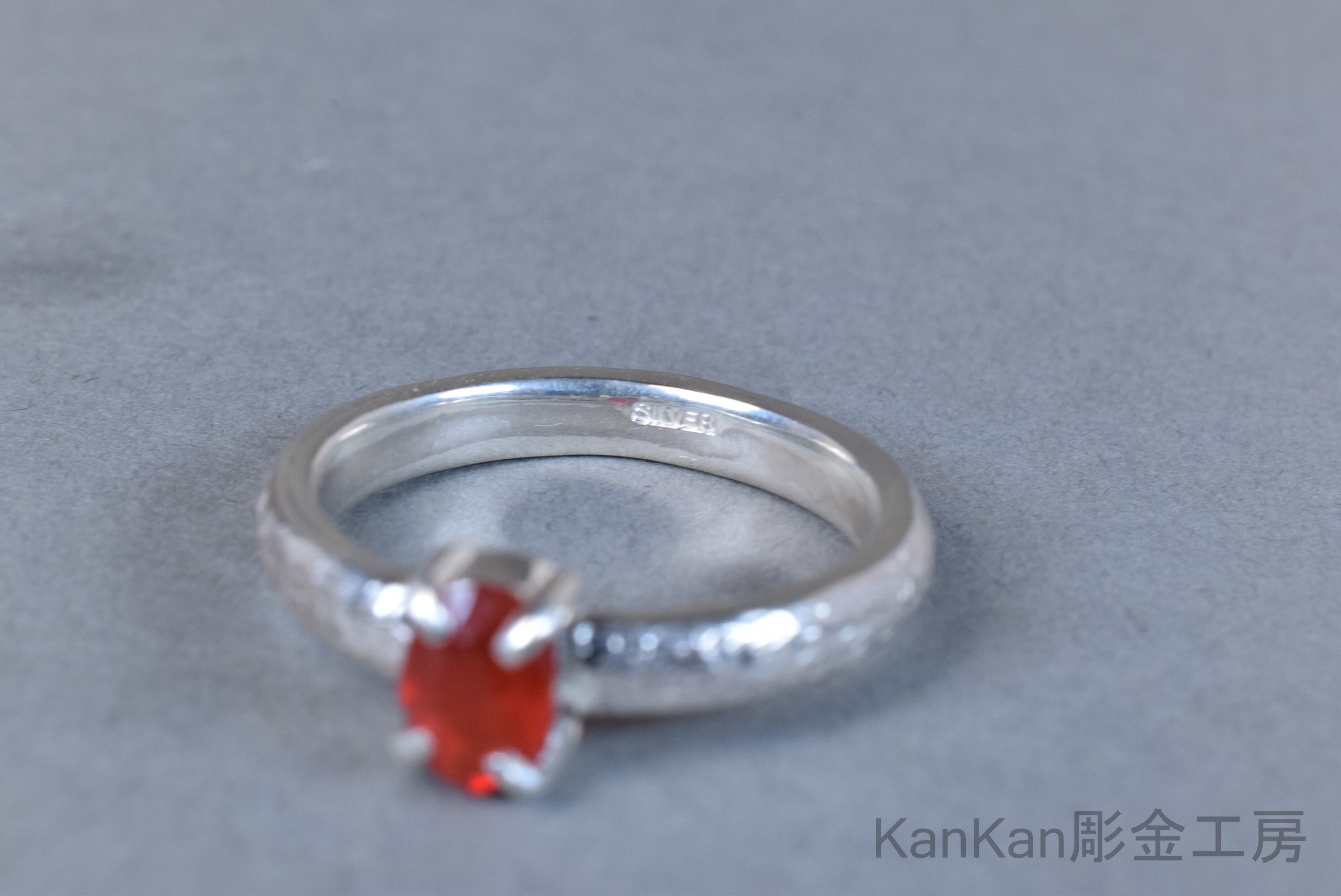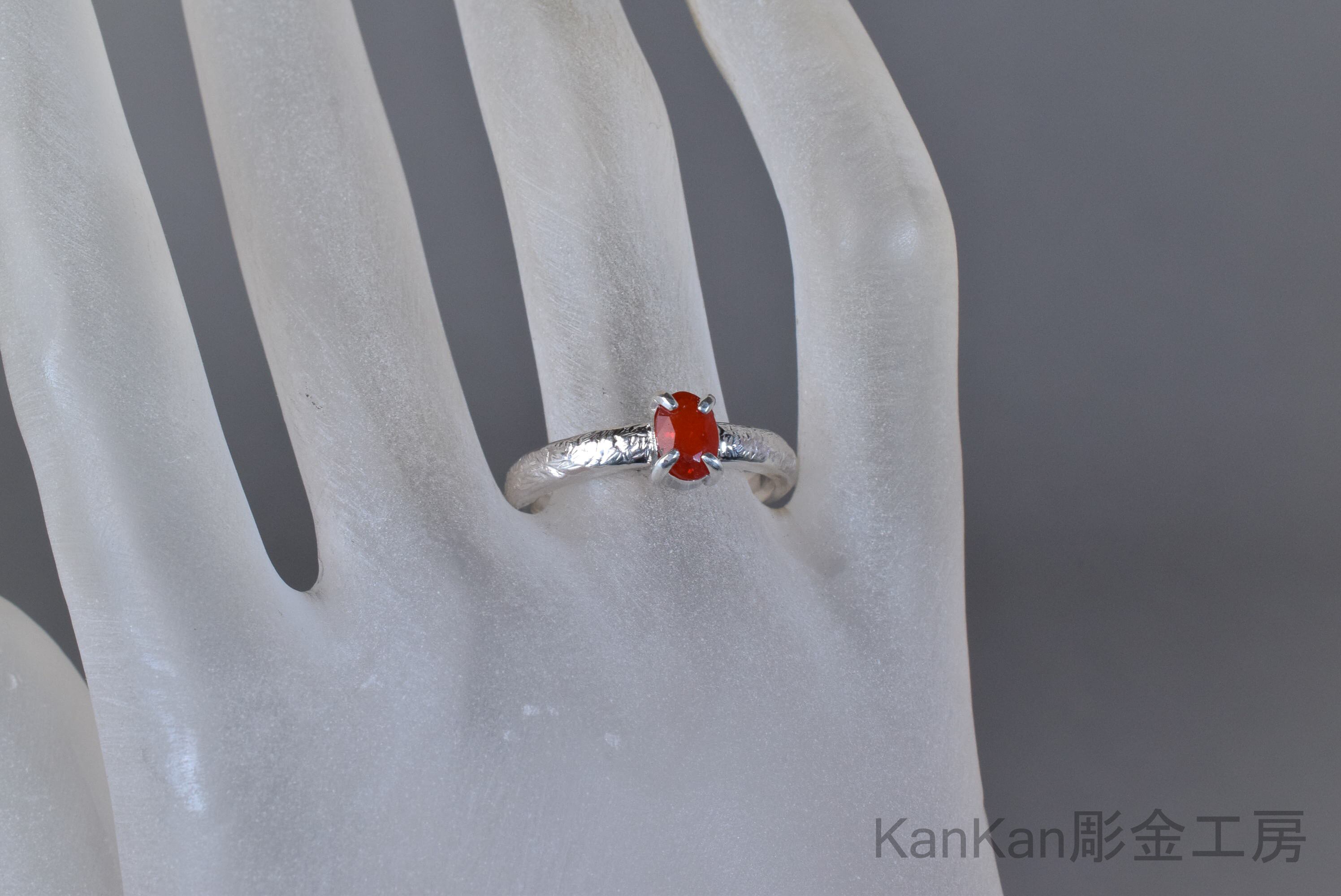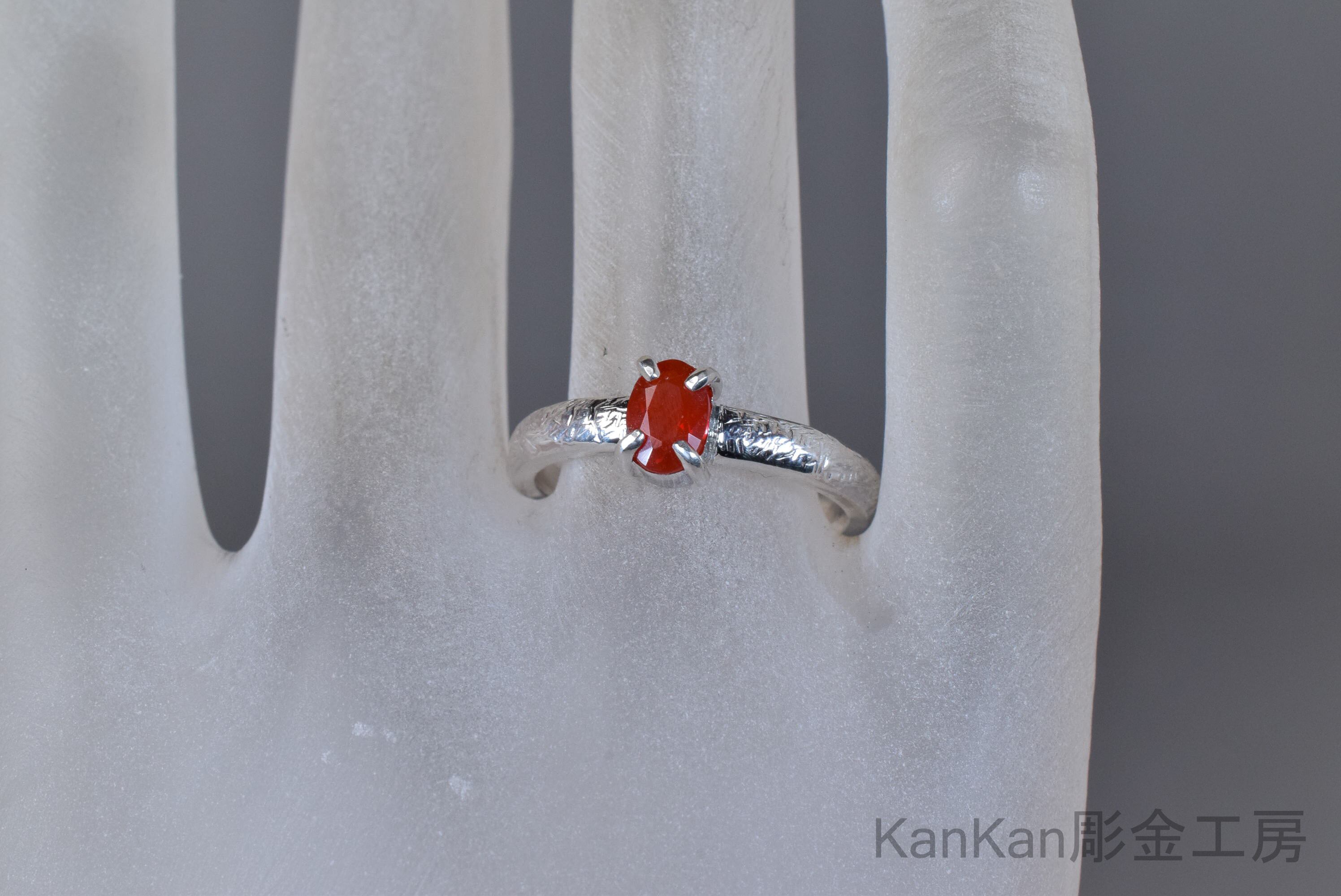 炎を思わせる朱色を呈したファイアーオパールのリングです。