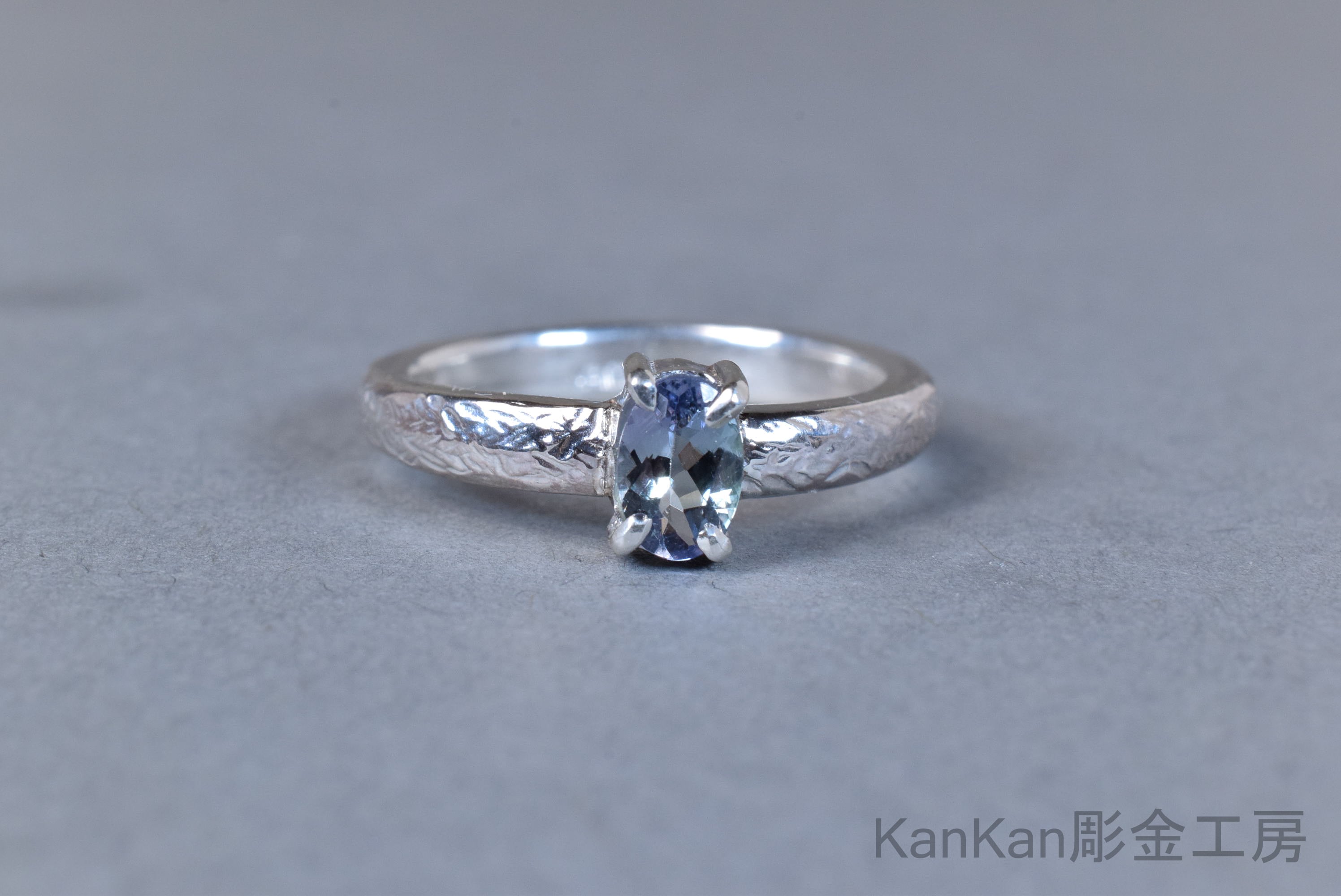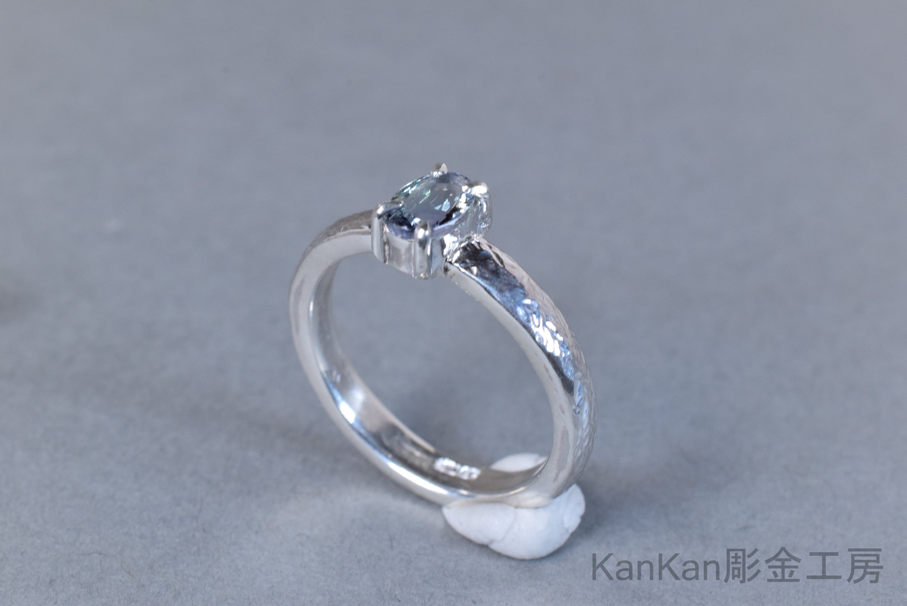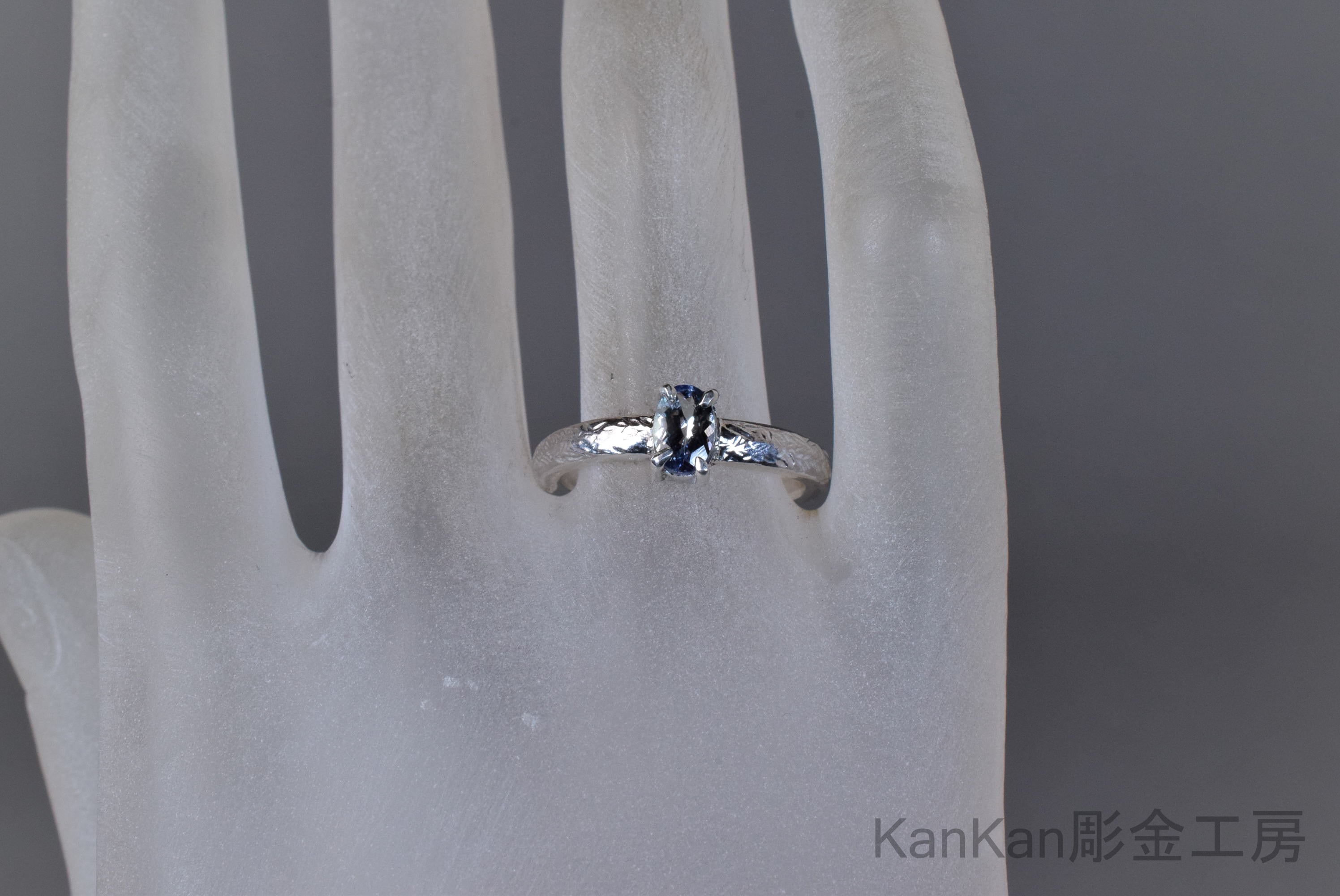 石の青と呼応する筋状の槌目を全周に施しました。