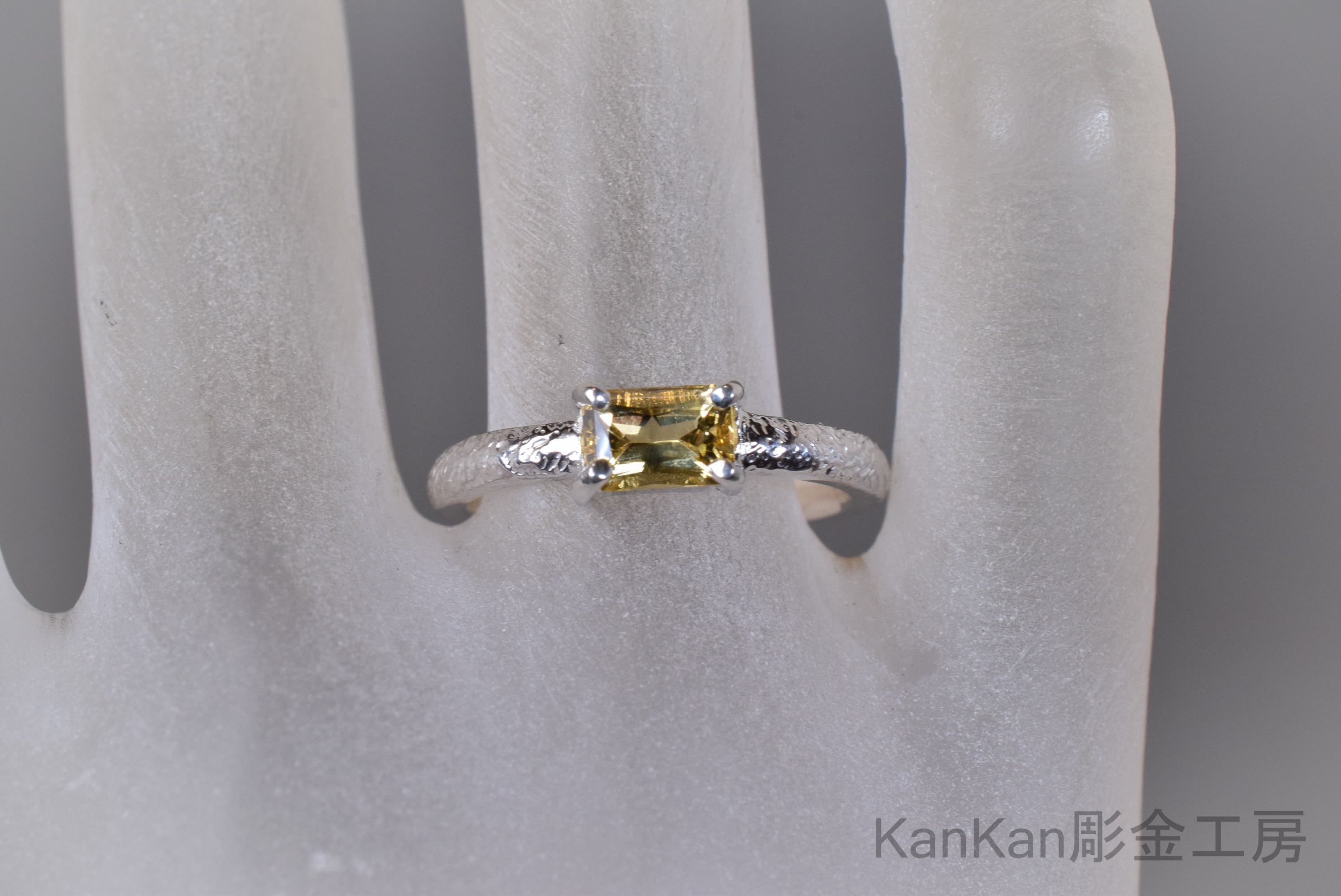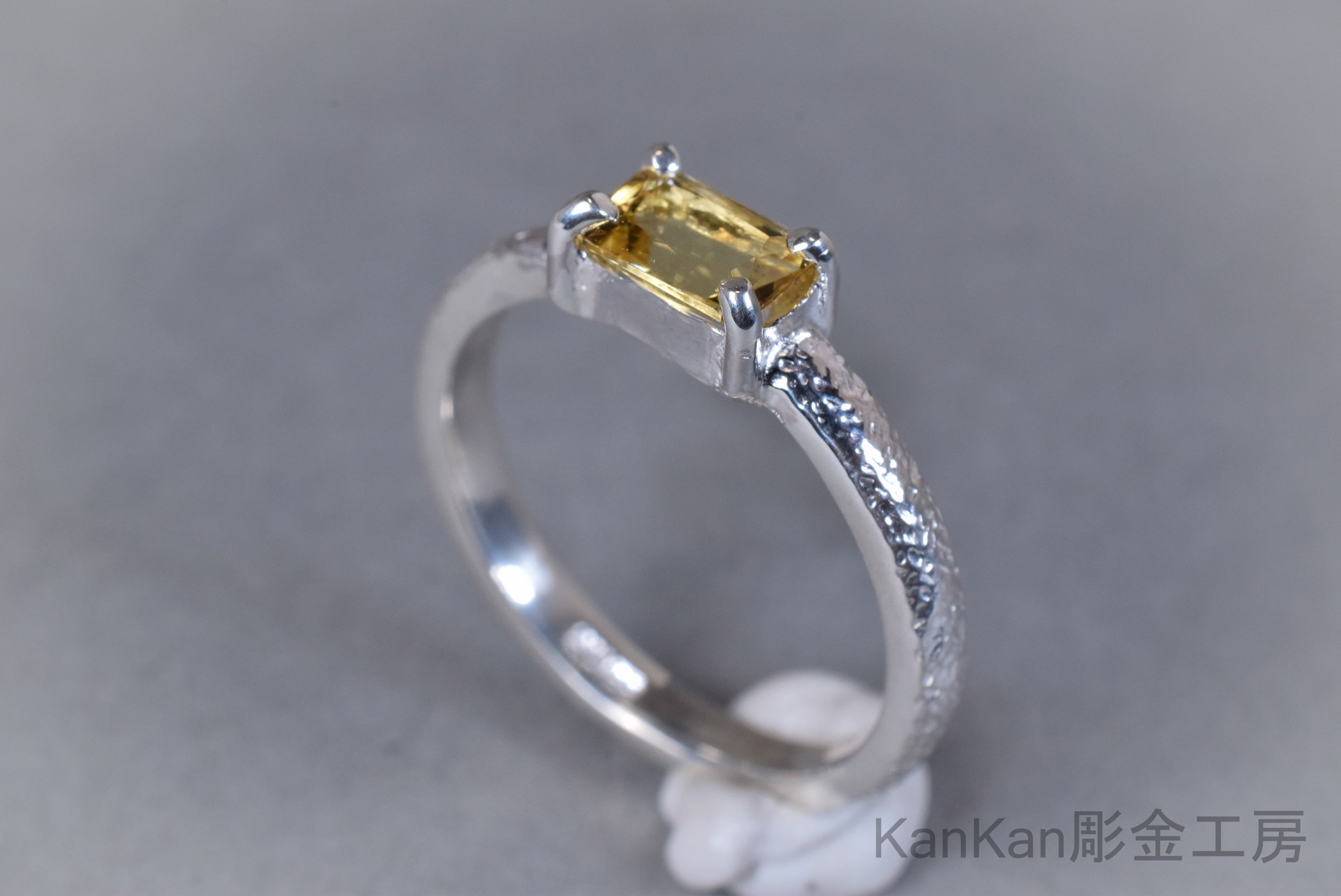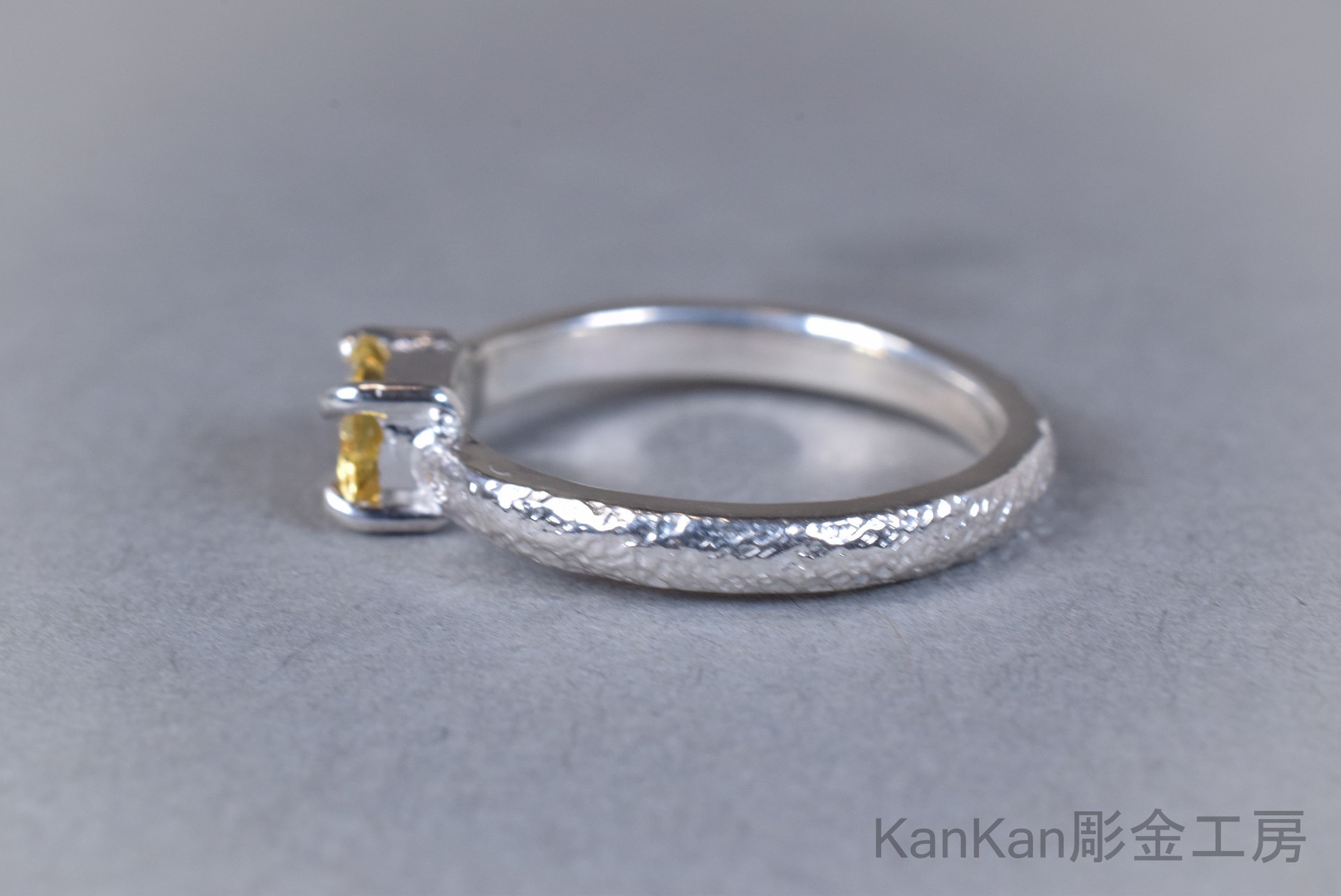 甲丸のリング全周に細かい槌目を施しました。